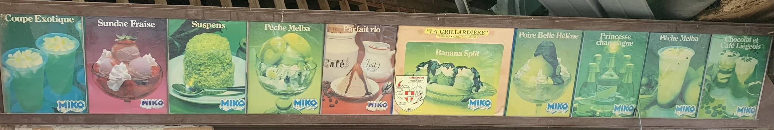 A faded sign from a grill & ice cream terrace in Salève, France.